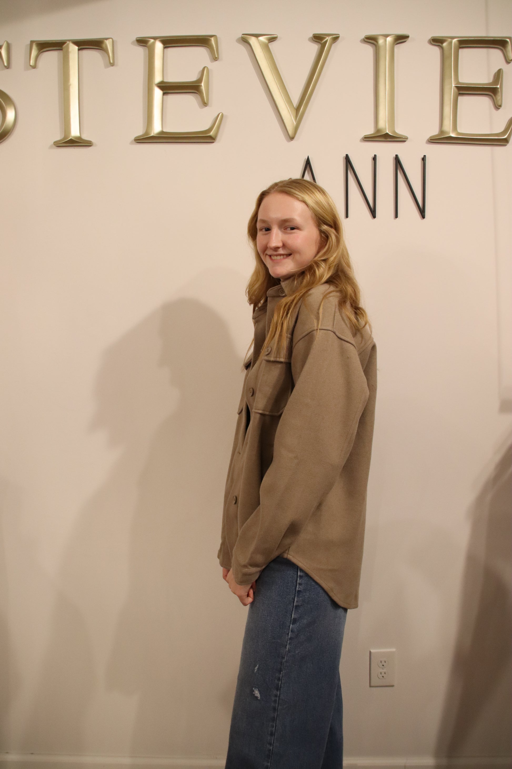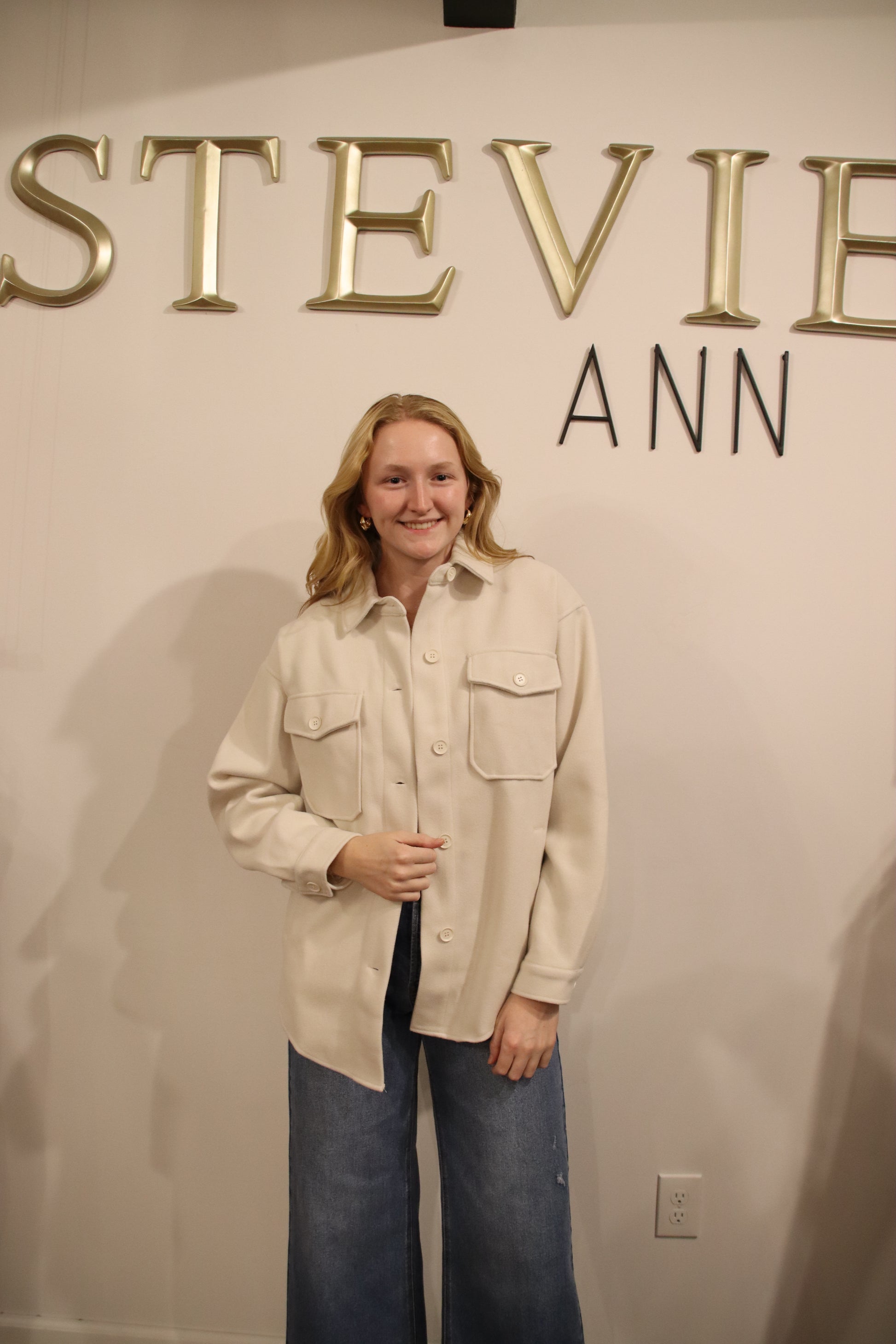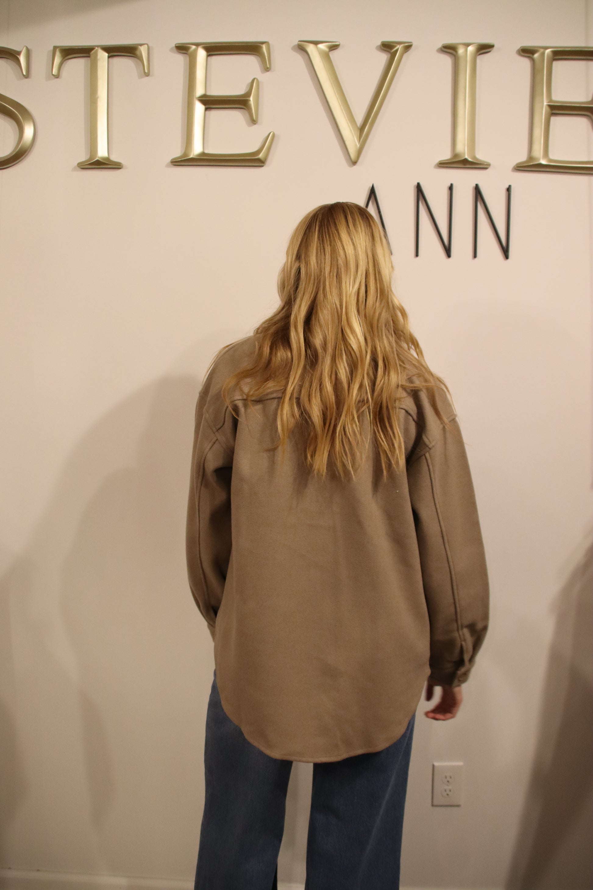 Meet the BIRKEN Shacket — the perfect mix of cozy and classic. Designed in a smooth, midweight faux wool, this oversized shirt-jacket brings effortless texture and warmth to your fall and winter looks. It features a collared neckline, dropped shoulders, functional button details, and double front pockets for that laid-back yet refined finish.