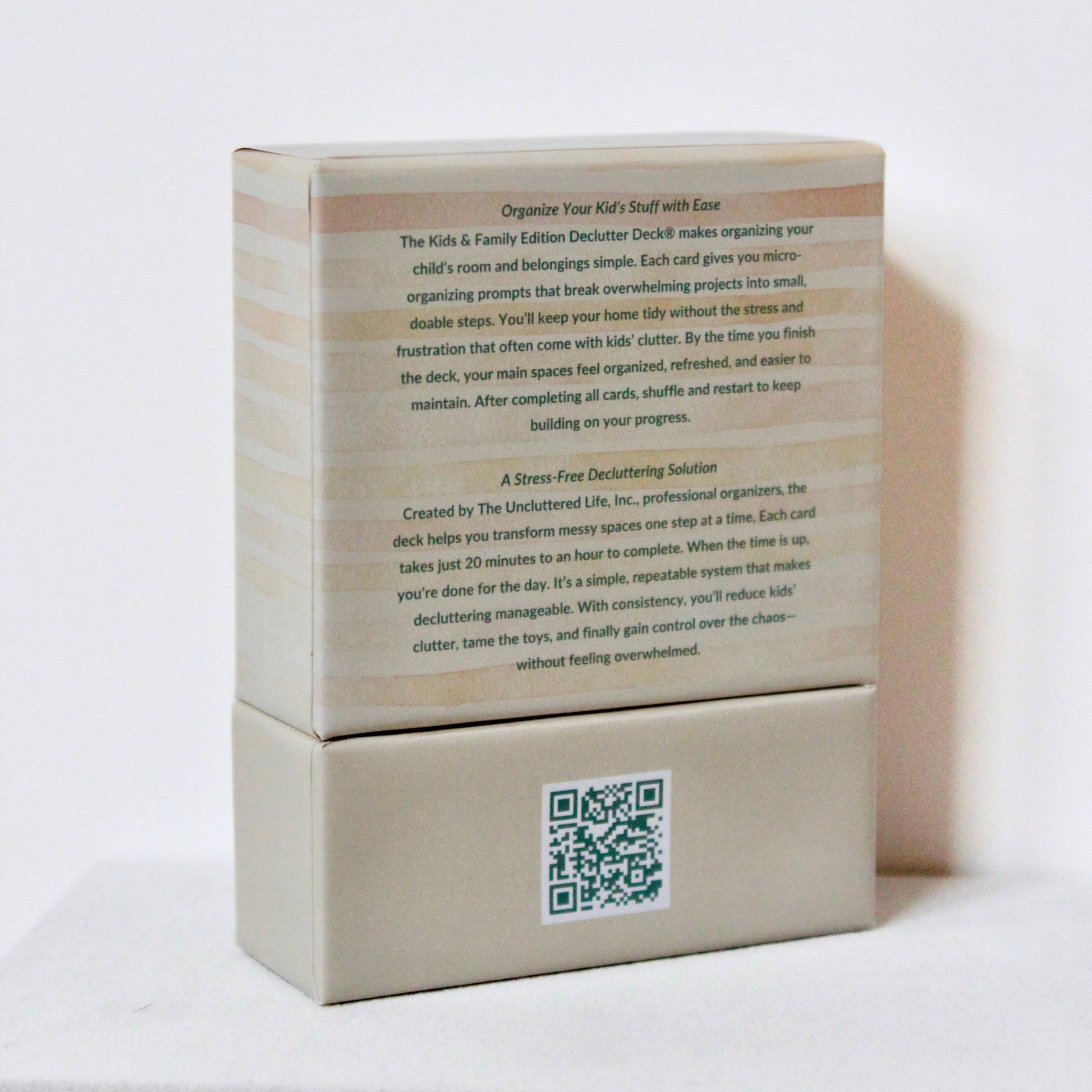Organize Kids’ Clutter with Ease The Declutter Deck Kids & Family Edition makes organizing your child’s belongings simple, manageable, and far less overwhelming. Each card offers a clear, bite-sized organizing prompt that breaks big projects—like toys, books, and clothing—into small, doable steps. Instead of trying to tackle everything at once, you’ll make steady progress without the stress and frustration that so often come with kids’ clutter. A Stress-Free System That Works Created by the professional organizers at The Uncluttered Life, Inc., this deck is designed specifically for busy families. Each prompt takes just 20 minutes to an hour and provides a clear stopping point, so organizing never takes over your entire day. With consistent use, you’ll reduce clutter, regain control of shared spaces, and create simple systems that are easy to maintain—even with kids. Flexible for Real Family Life.