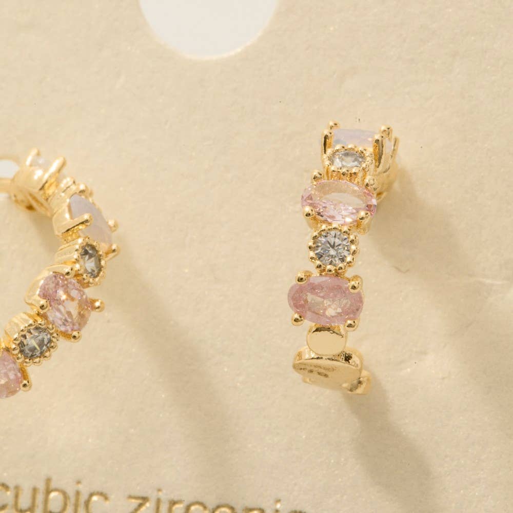 This pair of hoop earrings features a stunning gold-dipped design accented with assorted cubic zirconia for the perfect touch of sparkle. Thoughtfully detailed and effortlessly refined, these hoops are a beautiful statement of elevated style and impeccable taste.