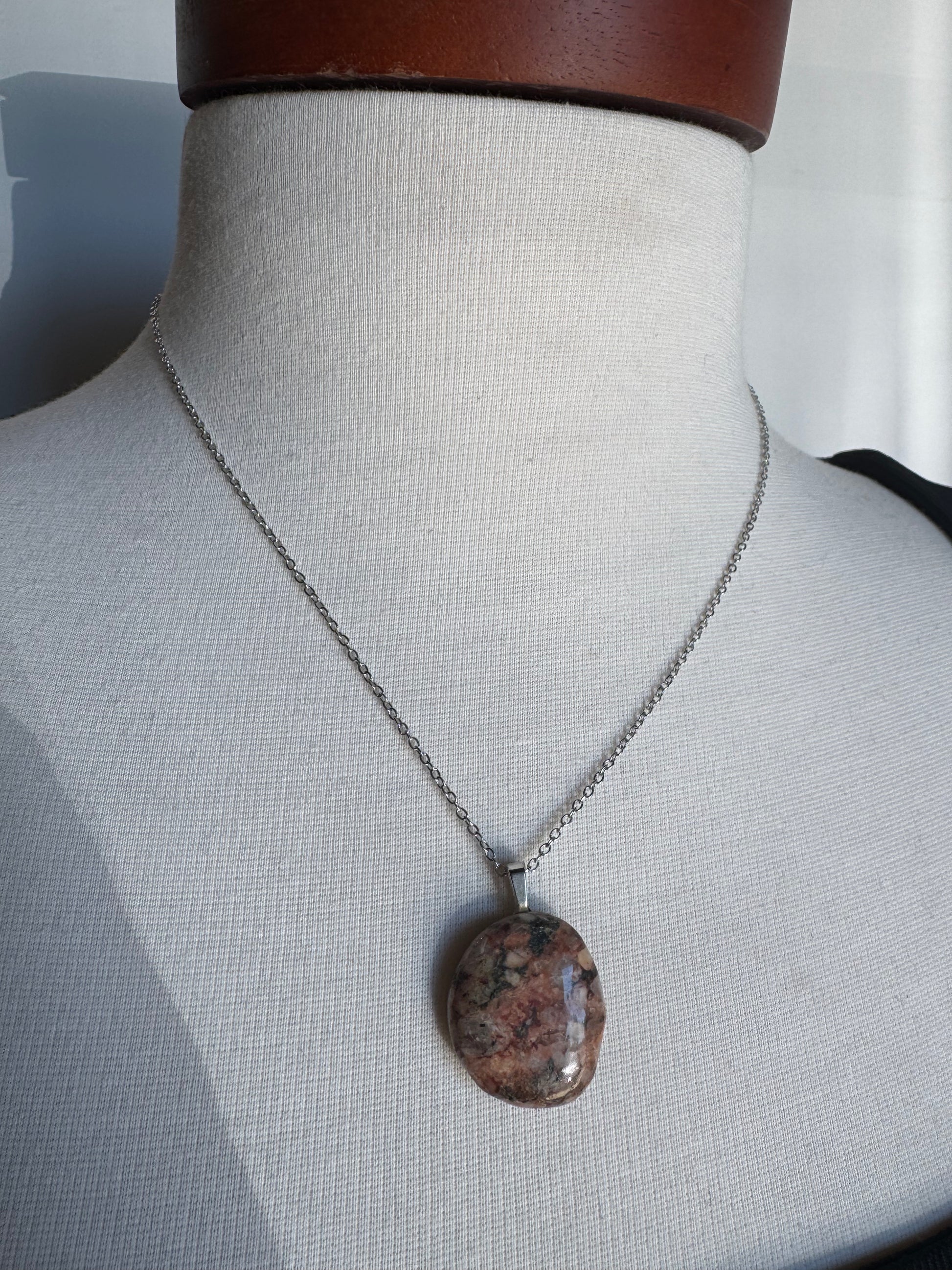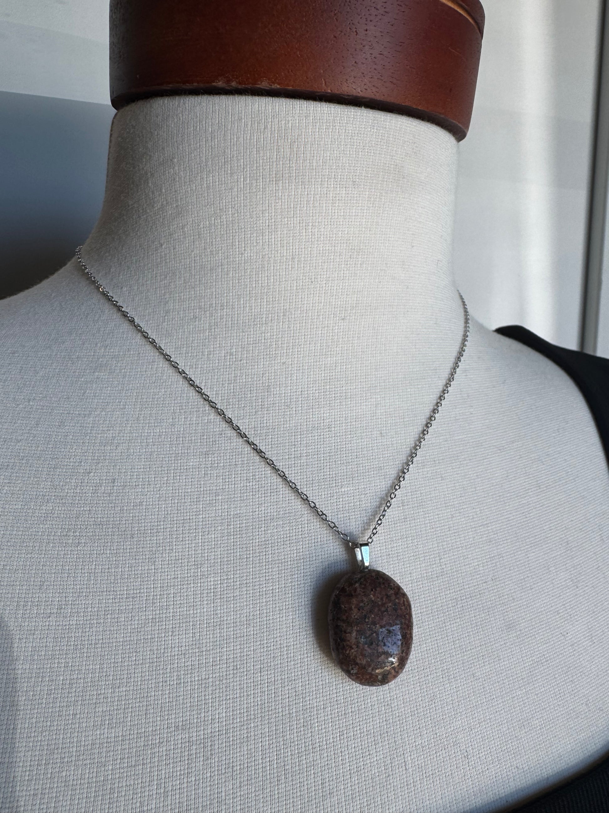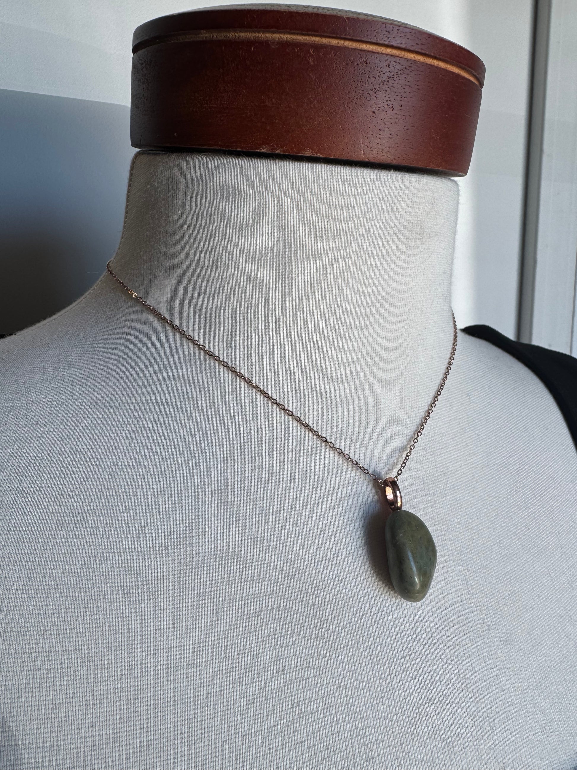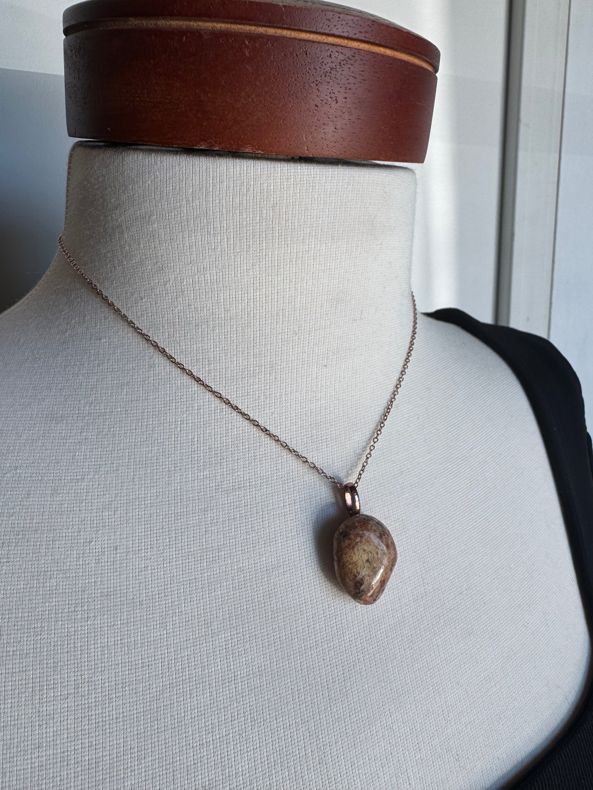 Crafted with love by a local artist who personally finds each stone, polishes it, and transforms it into one-of-a-kind jewelry. Each necklace is unique and available on your choice of gold, silver, rose gold, or leather chains.