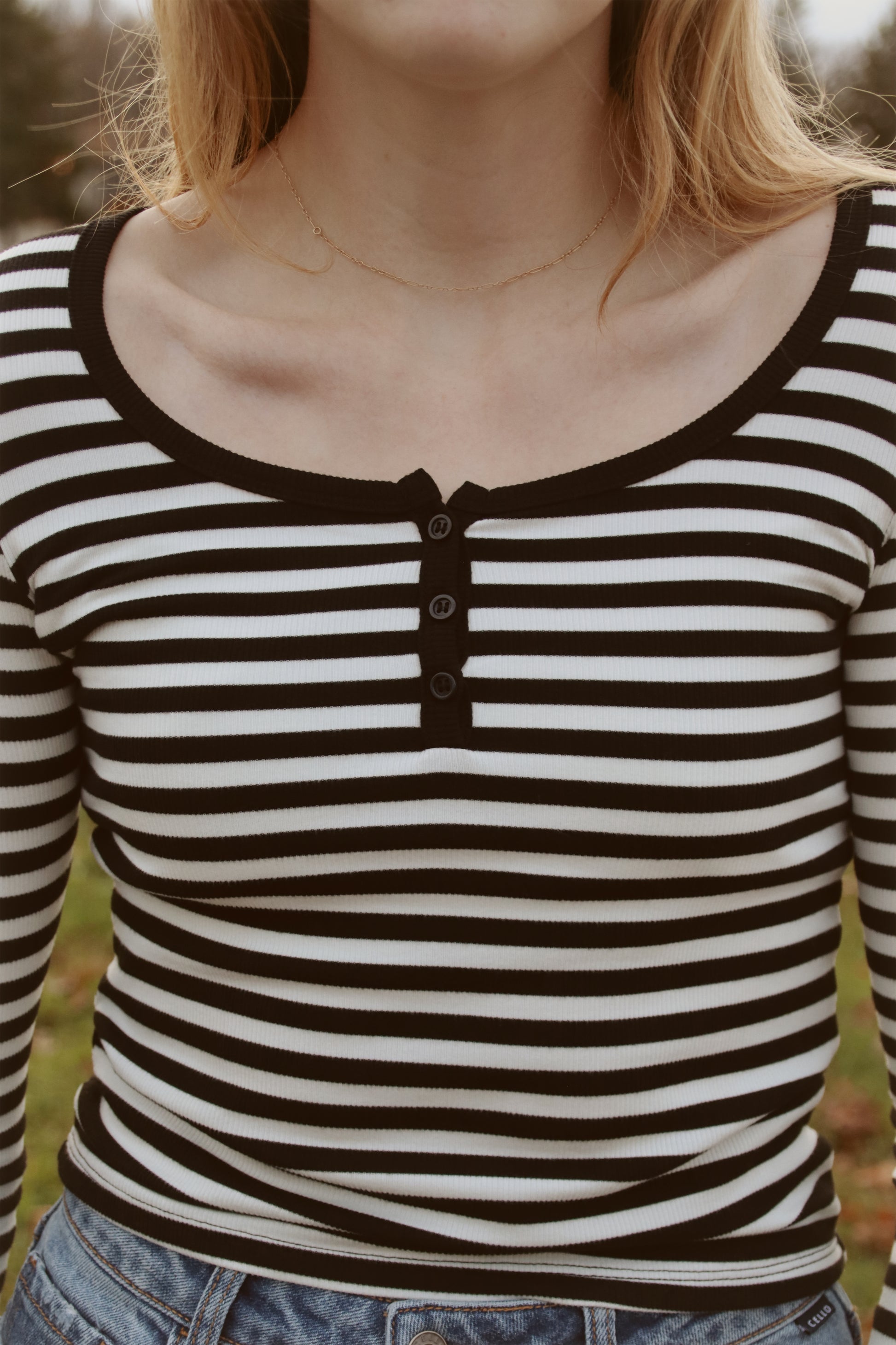 Meet your new go-to for fall layering — the Striped Brushed Rib Henley Top. Designed with a soft, brushed rib texture and subtle stretch, this piece feels as good as it looks. The classic Henley neckline adds a timeless touch, while the striped pattern keeps it casual-chic for everyday wear.