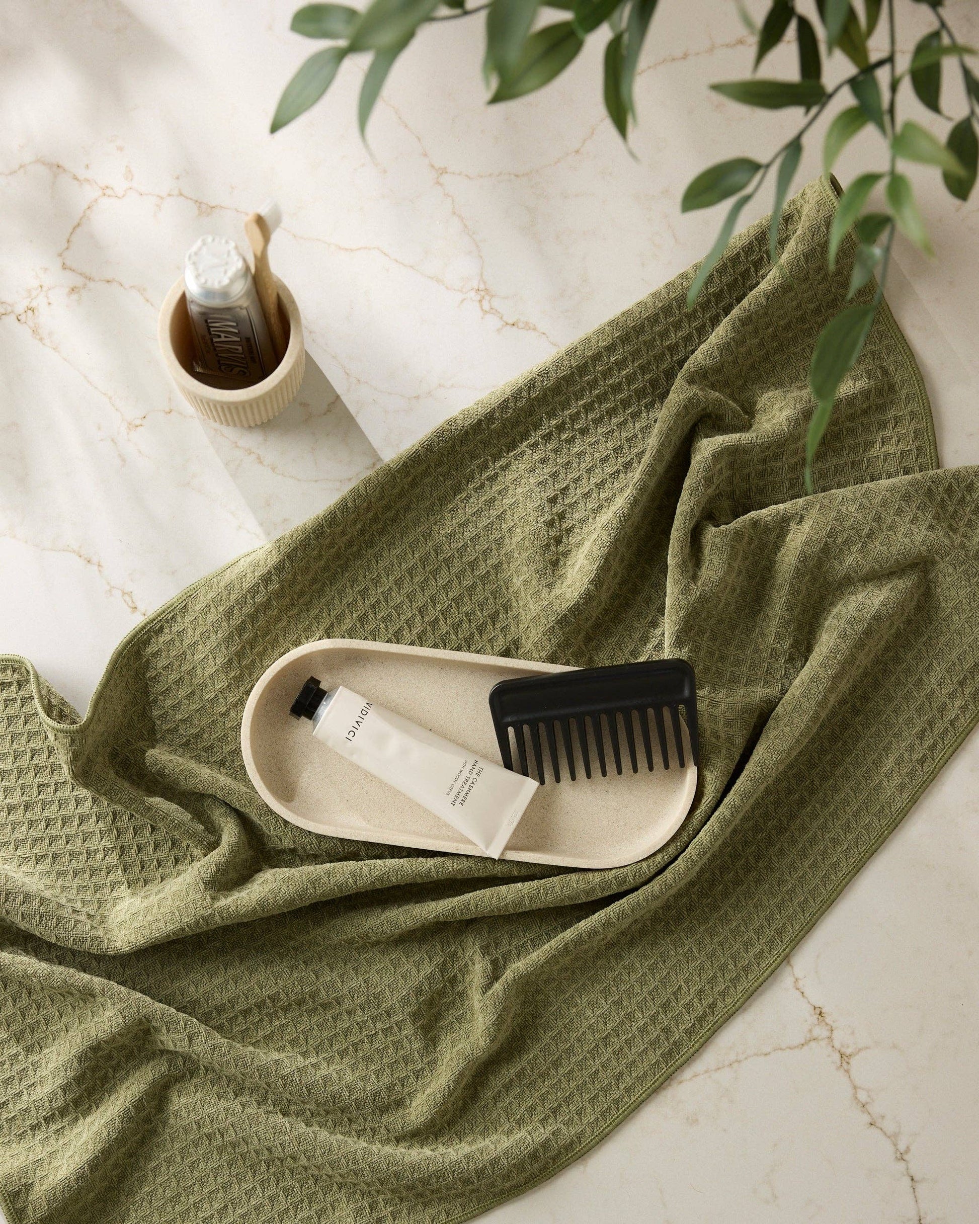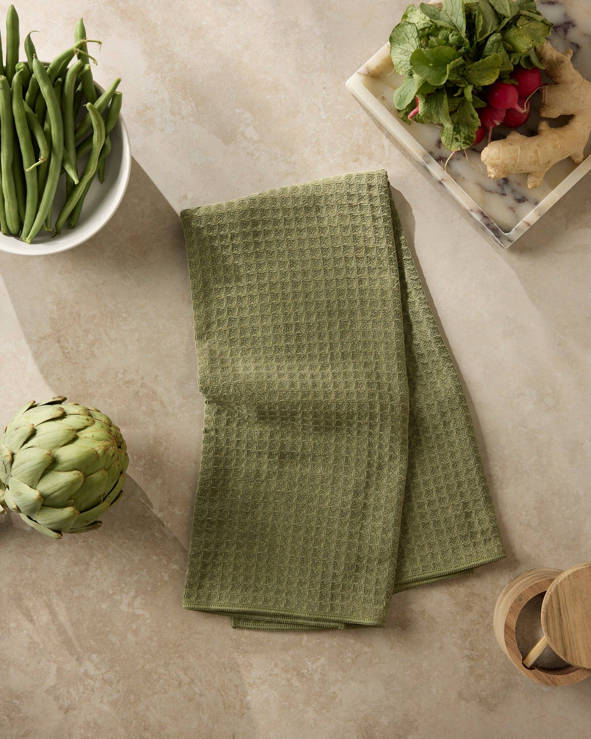 The Truffle Hand Towel, Geometry’s most luxurious towel yet. Designed in the same generous size as our beloved Tea Towel, this solid-hued stunner is woven from an ultra-soft, high-performance waffle weave that’s as velvety to the touch as it is effective in action. Available in a curated palette of refined, grounded hues, the Truffle Towel brings understated elegance to any kitchen. A discreet hang loop adds everyday convenience, while its fade-resistant finish ensures it keeps its good looks, wash after wash.
