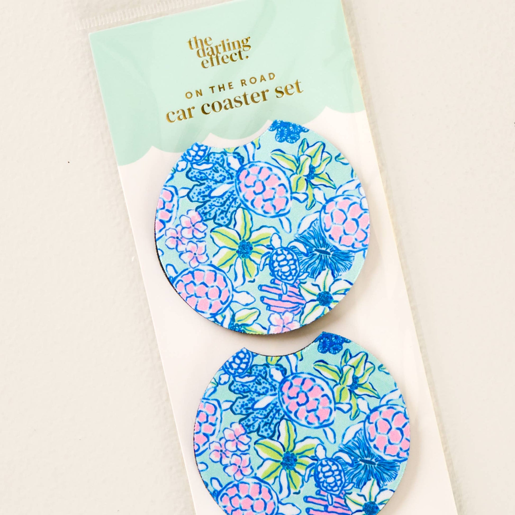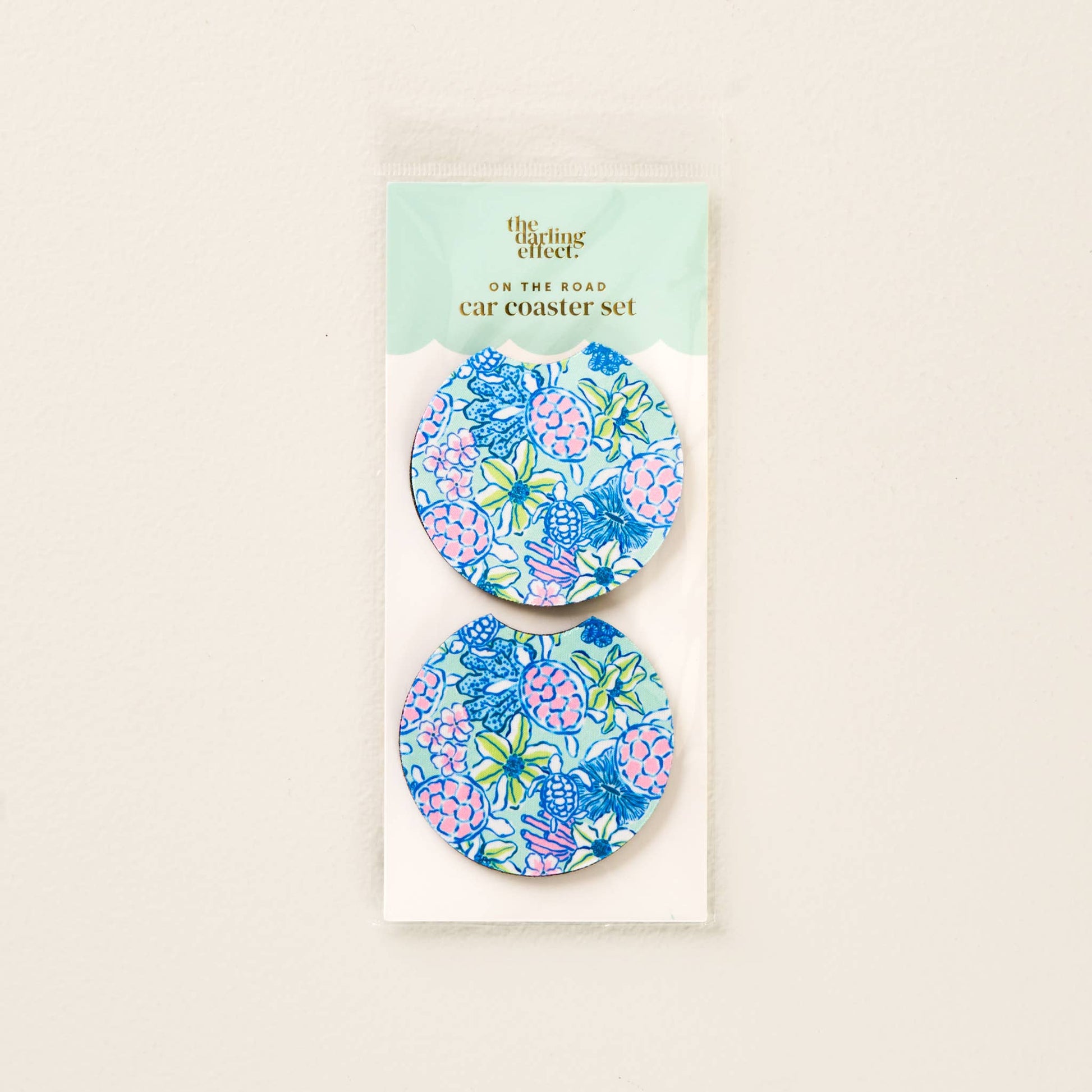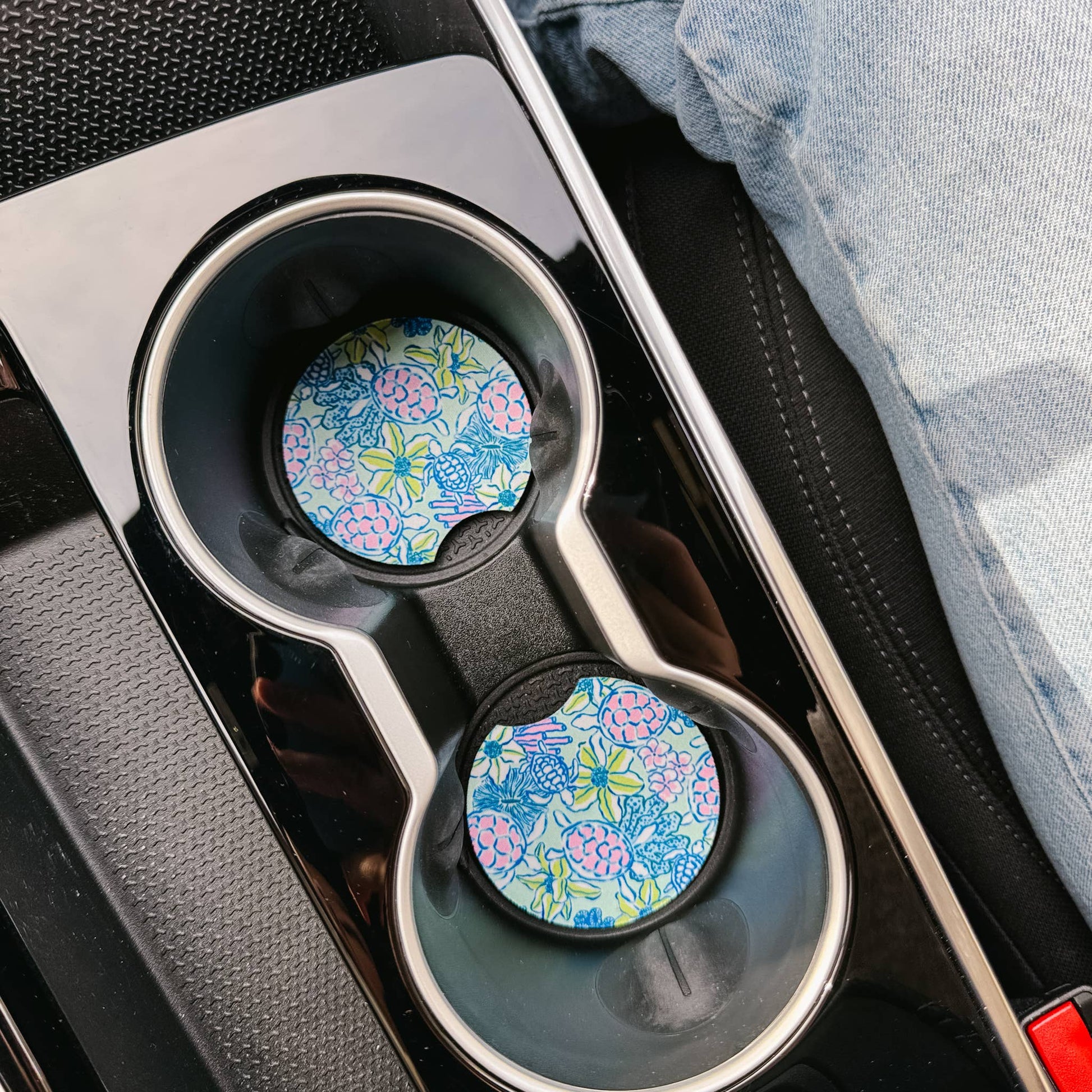 Keep your car clean and dry with our On the Road Car Coaster Set! This set of two matching coasters absorbs moisture to protect your car’s interior from spills and condensation. They’re easy to remove for cleaning and fit most standard cup holders. Packaged in a clear sleeve with a hang tab, they’re a practical and stylish accessory for any car. Set of two matching coasters. Absorbs moisture to protect your car. Can be easily removed.
