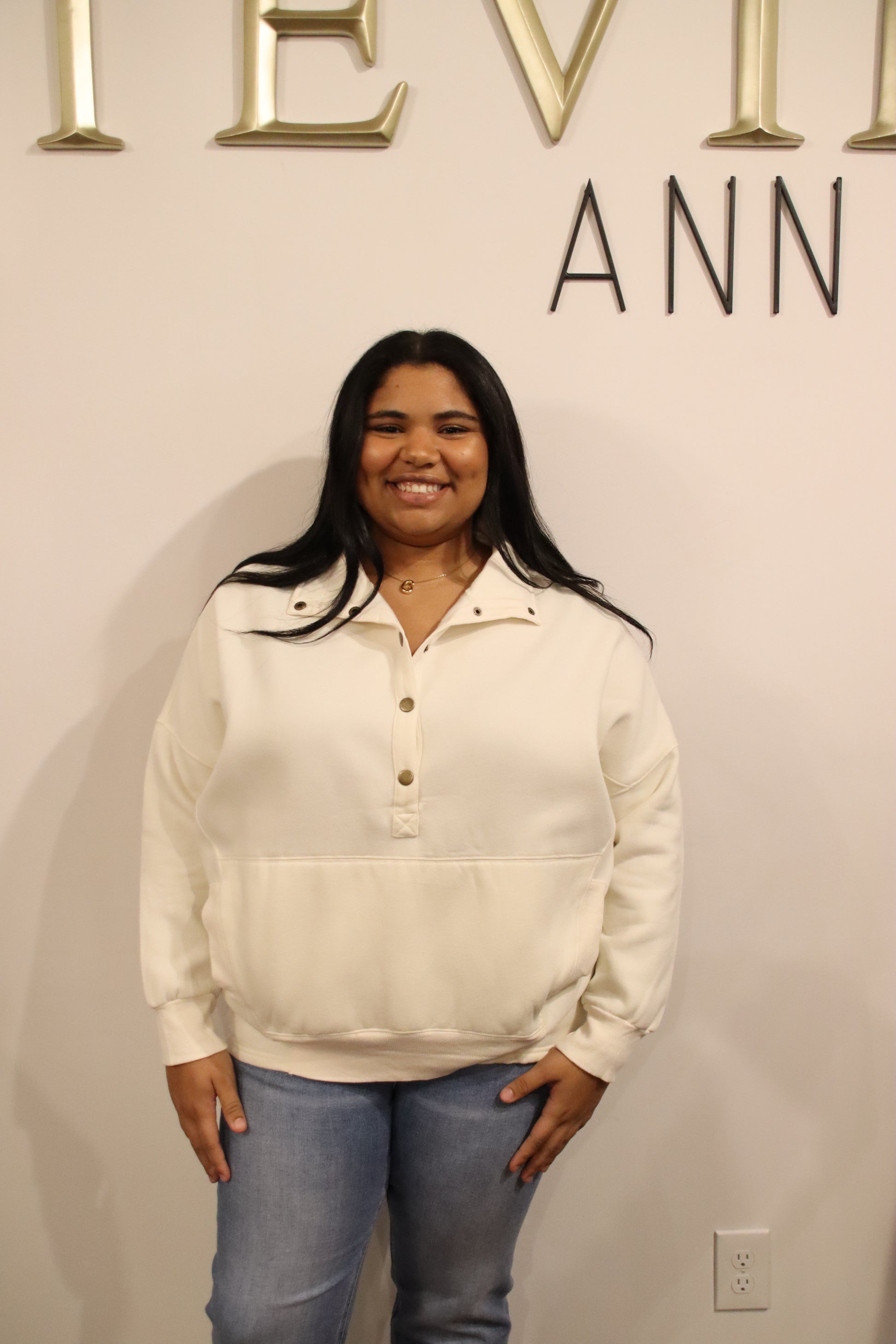 Bring cozy, laid-back style to every day with the Plus Weathered Snap Sweatshirt. Crafted in a soft, washed fabric for that perfectly worn-in feel, this pullover features a high snap neckline, side pockets, and ribbed cuffs that blend comfort with a touch of structure. The relaxed fit and vintage-inspired wash make it your new go-to layer for casual days, errands, or travel.