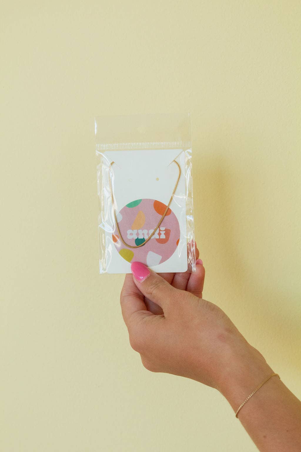 This stunning necklace is the most perfect dainty everyday piece. It's a simple gold coiled chain, and is 17 inches long. It is made out of a high quality stainless steel material which means it's water resistant. It makes for the perfect everyday piece that you don't have to take off!