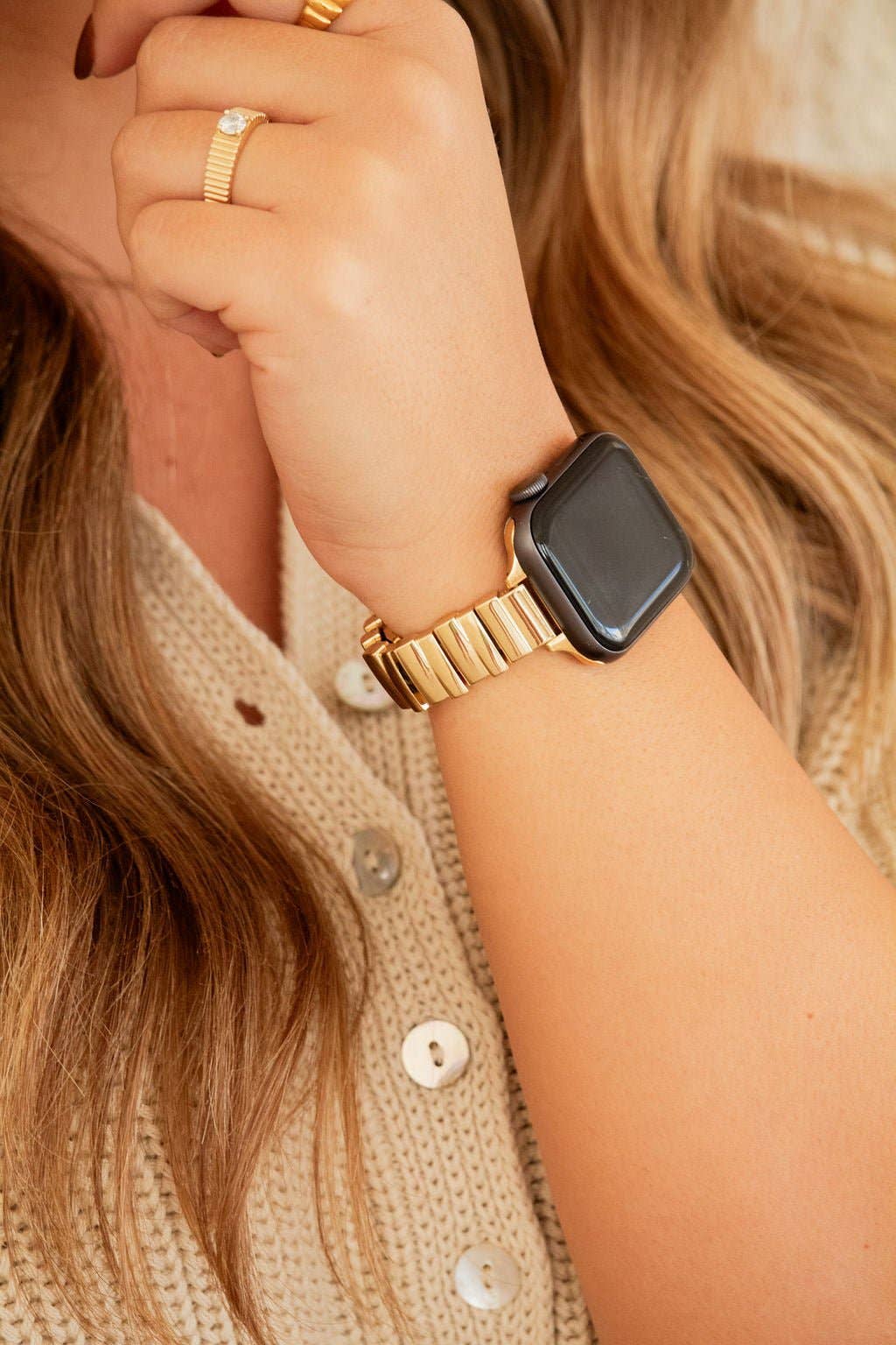 This watch band is made out of stainless steel metal and comes in vacuum-plated 18K gold as well.