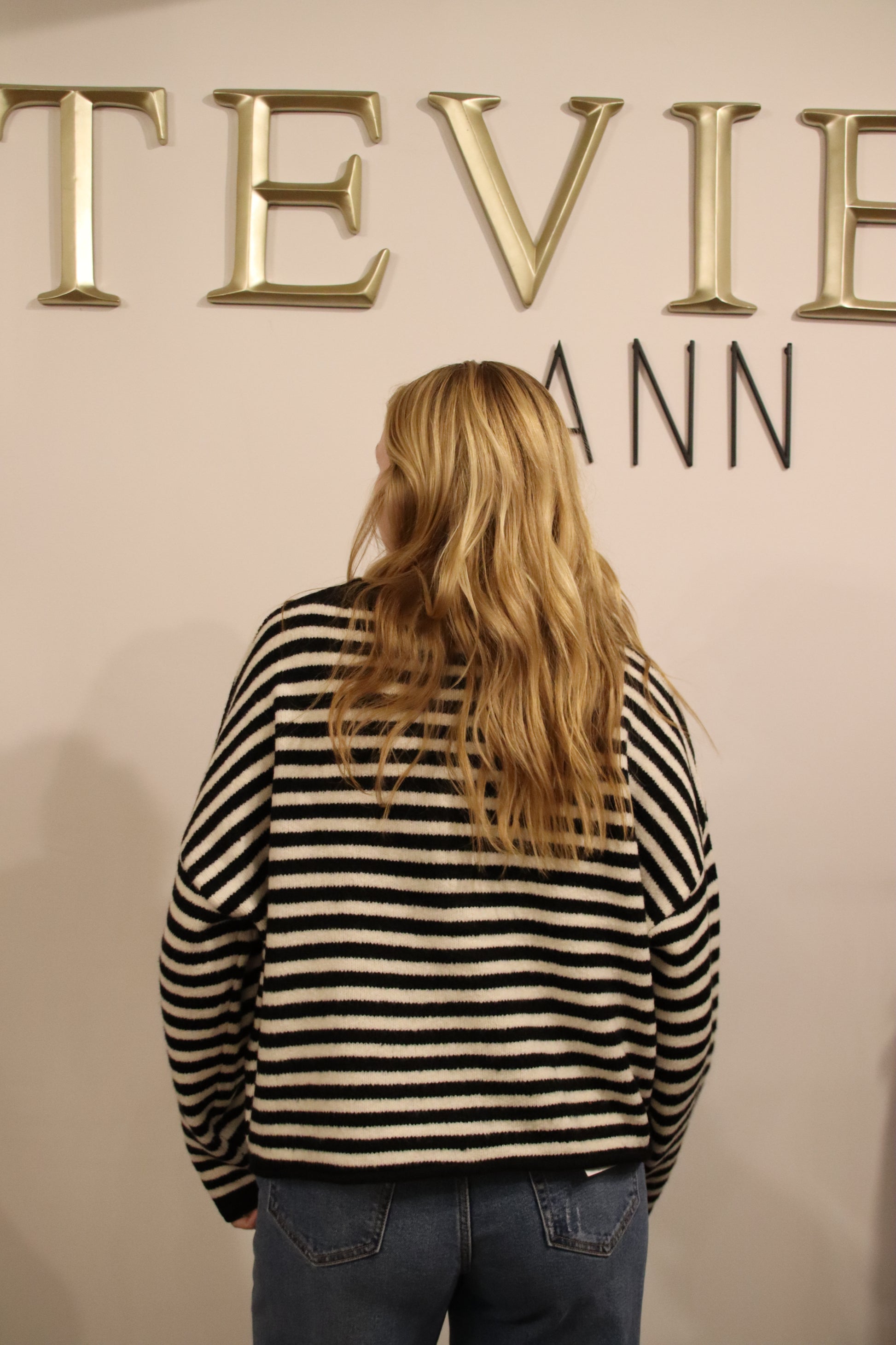 The Oslo Stripe Cardigan brings effortless style and cozy texture to your everyday lineup. Designed with soft knit stripes and a relaxed fit, this button-down cardigan blends timeless charm with modern simplicity. The round neckline and long sleeves keep it classic, while the lightweight stretch knit makes it easy to layer through every season.